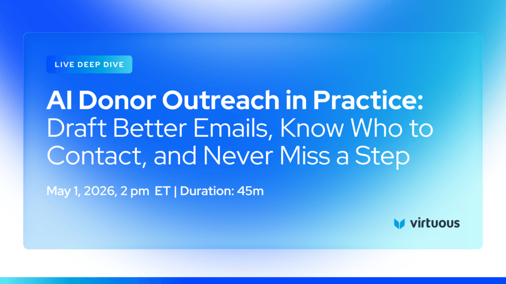 Already a Virtuous customer? Our Professional Services help with Data and Report Clean-Up, Custom Training, Consulting and Giving Page Optimization.