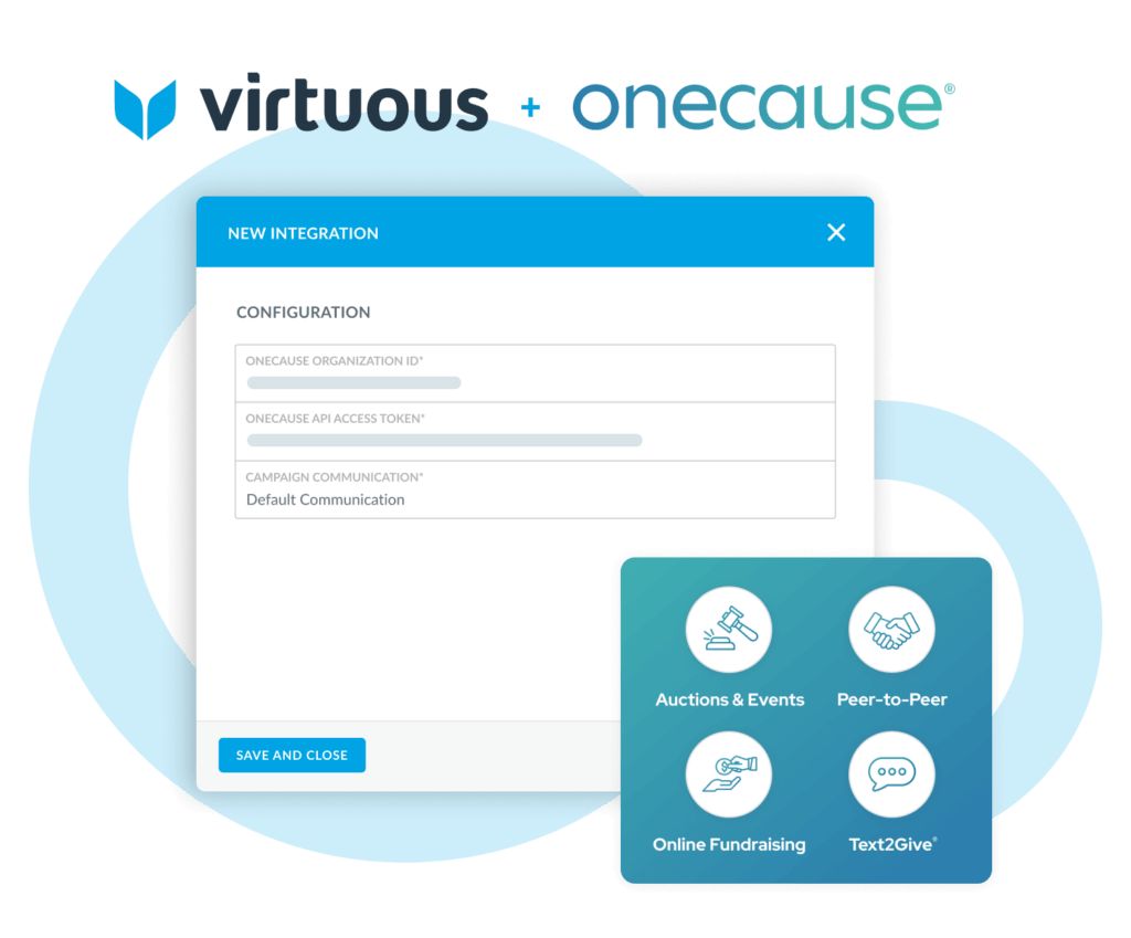 Unite the power of Virtuous and OneCause to unlock a dynamic view of supporters, both before and after events. You’ll gain access to powerful gift integration, ensuring every contribution is effortlessly captured and activity syncing – including event ticket purchases and auction bidding.