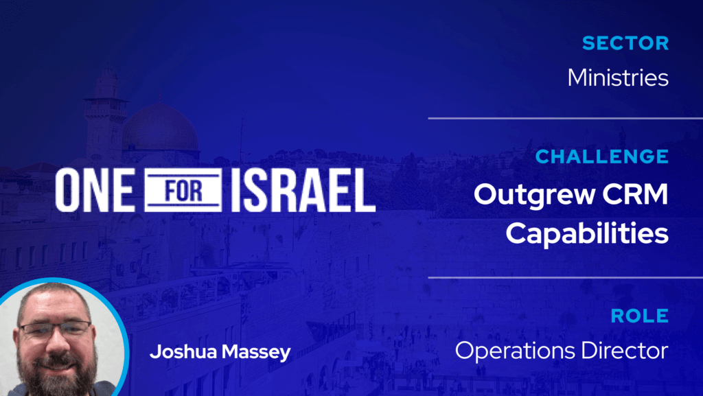 One of the biggest challenges for One for Israel was allowing their teams the ability to have access to mission-critical data and create trust across the board in that data. Now with more transparency and understanding of their donors, One for Israel can forge deeper more lifelong relationships with its donors to help increase their donor retention.