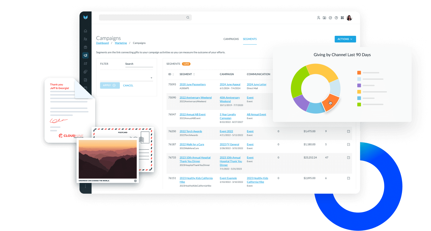 Send comprehensive, omni-channel campaigns to activate donors and increase engagement.