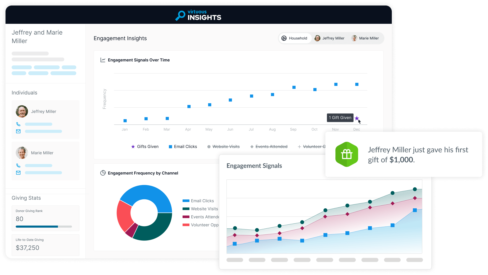Actionable insights to help retain donors and extend engagement.