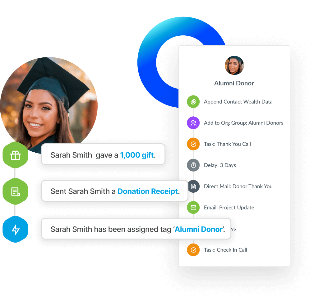Design personalized donor journeys, plus automate back-office processes and task management.