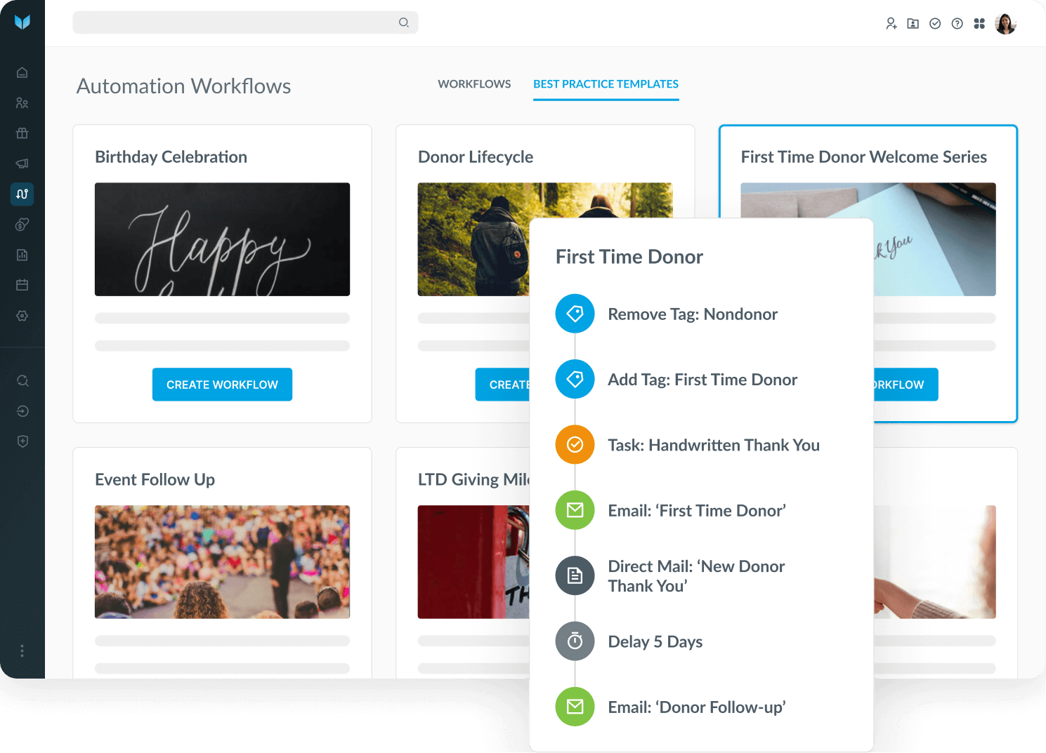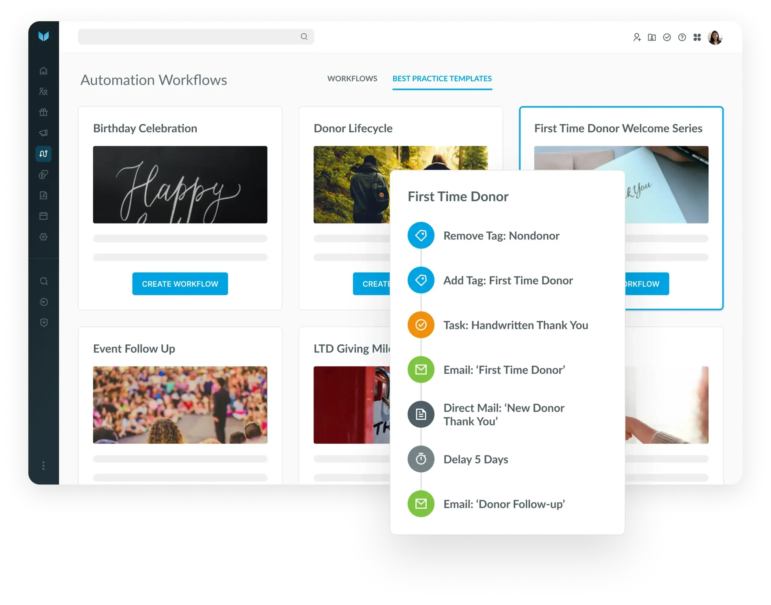 Automate workflows to save time, and build personalized sequences to accelerate donor engagement based on donor behavior—so you never miss a moment to connect.