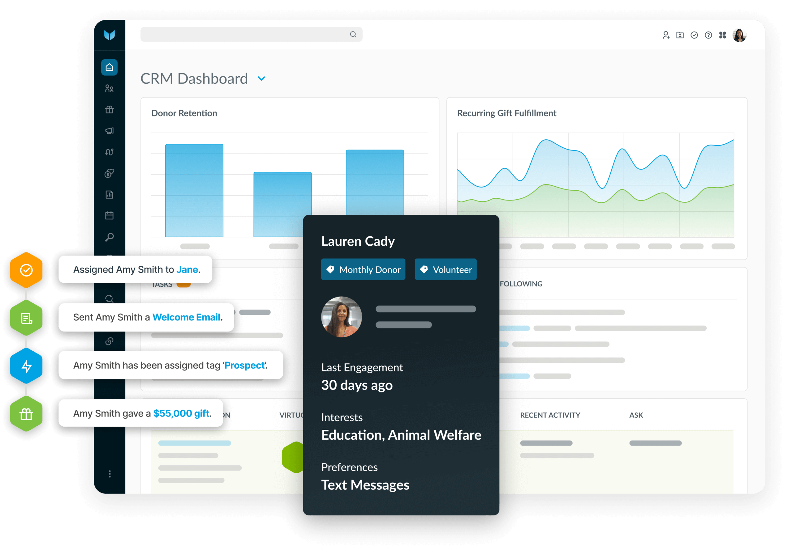 From first gift to major gift, automate meaningful touch points that move donors through a journey—without overwhelming your team.