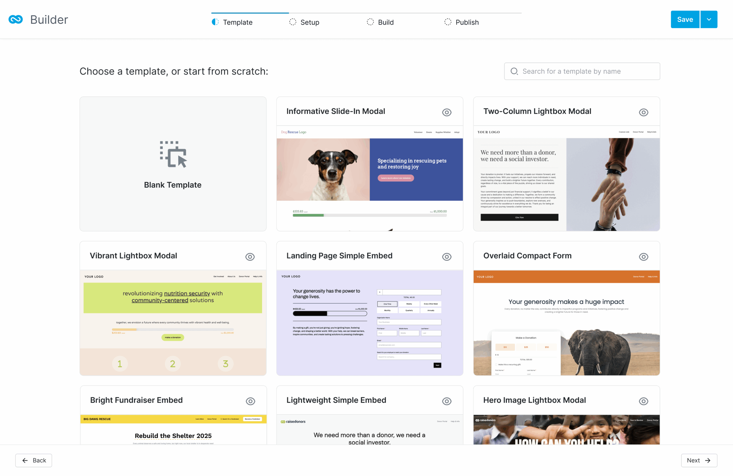 Use built-in best practice templates for campaigns, events, and volunteer drives—so you can launch faster and drive results with confidence.