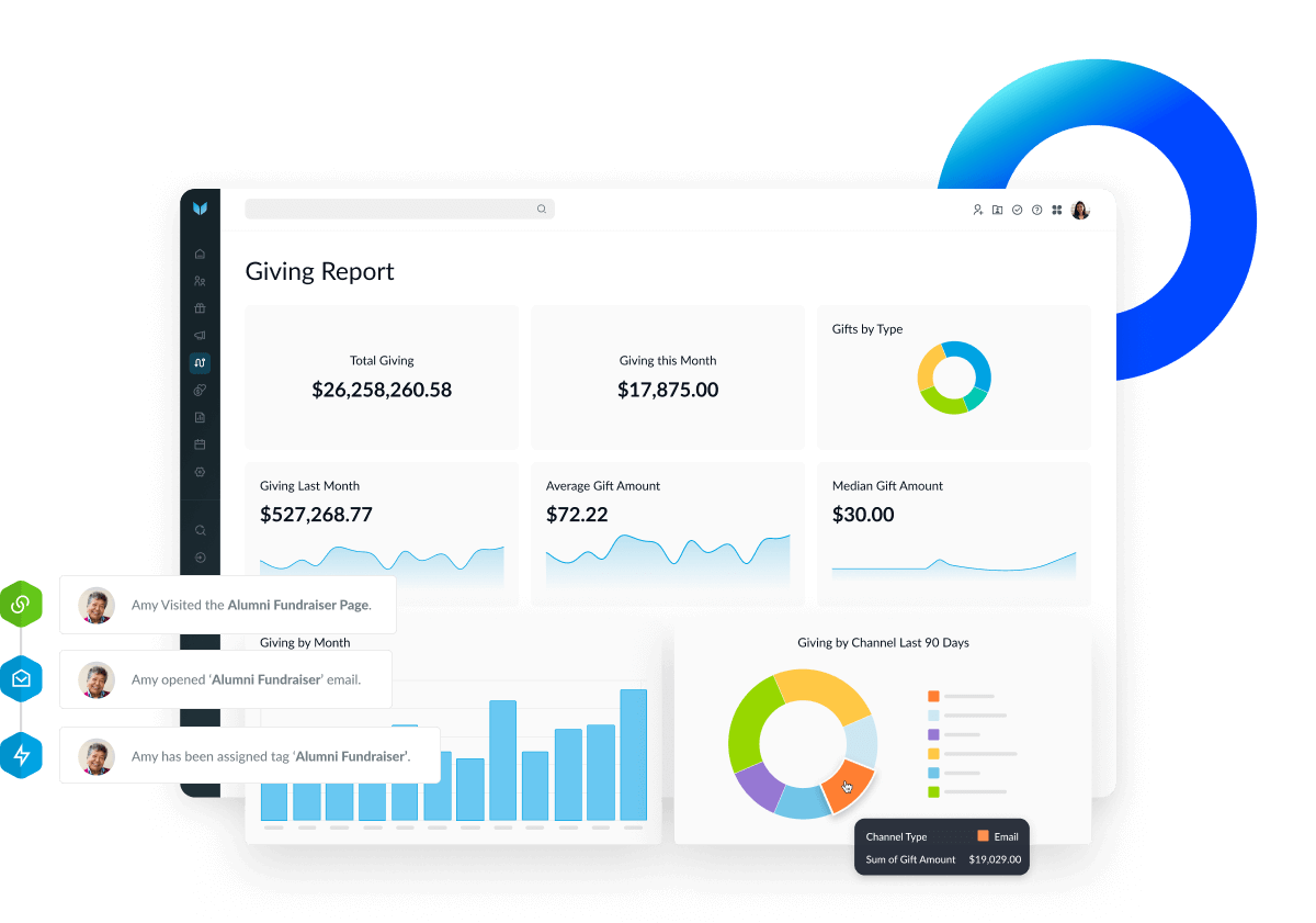 Actionable insights to help retain donors and extend engagement.