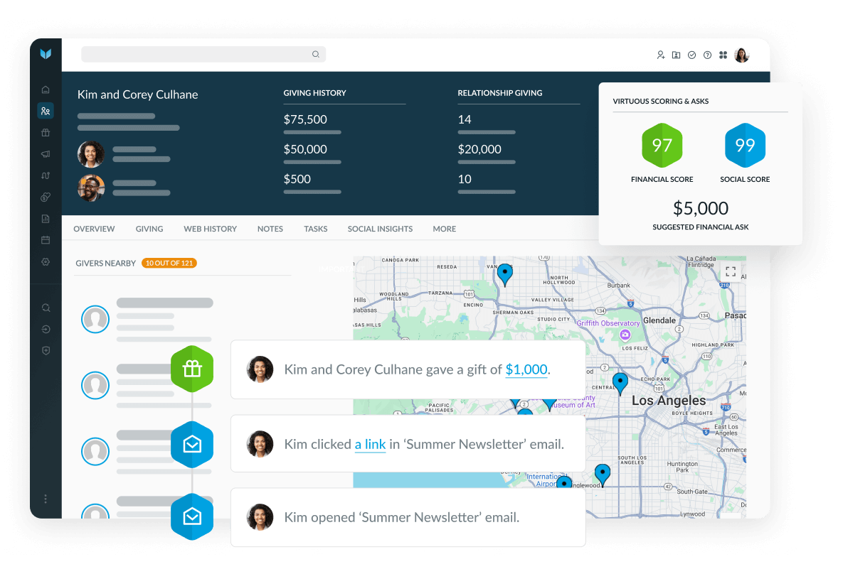 Virtuous gives you the nonprofit CRM, fundraising, volunteer, and marketing tools you need to create responsive experiences that build trust and grow impact.